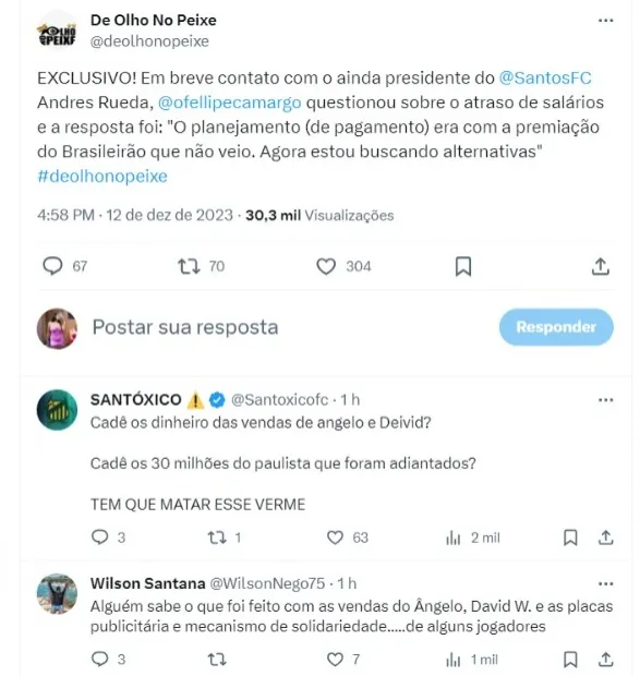“O planejamento (de pagamento) era com a premiação do Brasileirão que não veio. Agora estou buscando alternativas“, disse o presidente Andres Rueda em breve declaração ao De Olho no Peixe.