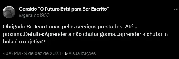 Contratado como esperança da equipe no meio da temporada, Jean Lucas até começou bem, mas caiu de rendimento no fim da temporada. Com futuro indefinido, o camisa oito adotou um tom de despedida na mensagem.