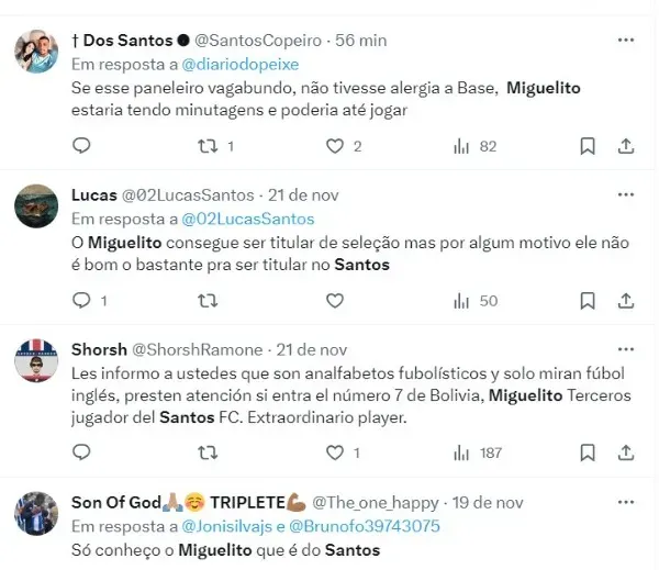Considerado uma joia no futebol boliviano, o meia Miguelito, de apenas 19 anos, não tem recebido oportunidades no time profissional do Santos nesta temporada.