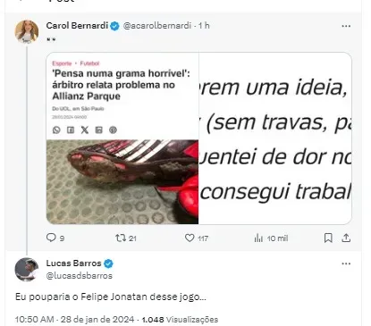 Em informação trazida pelo UOL, um juiz apitou um jogo no Allianz Parque nos últimos dias, ele acabou se lesionando e enfatizou que o gramado do estádio está em condições ruins.