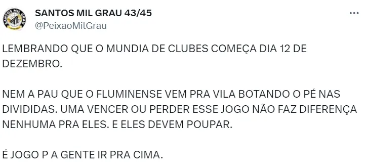 A expectativa dos torcedores do Santos nas redes sociais é…