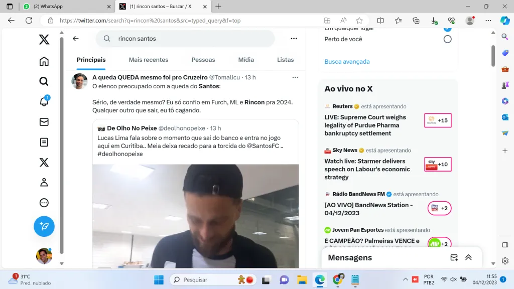 O Santos chega para a última rodada do Campeonato Brasileiro lutando ainda contra o rebaixamento. E o clima interno ficou ainda pior com o revés por 3 a 0 para o Athletico-PR, na Ligga Arena, no último domingo (3).