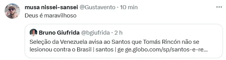 Segundo publicação do GE, o departamento médico da Venezuela informou ao Peixe que o jogador está 100% fisicamente e deve estar em campo nesta terça-feira (17), contra o Chile, em mais uma rodada das Eliminatórias da Copa do Mundo. Nas redes sociais, santistas em sua maioria comemoraram a informação, sabendo que Rincón é um dos líderes do elenco e capitão da equipe.