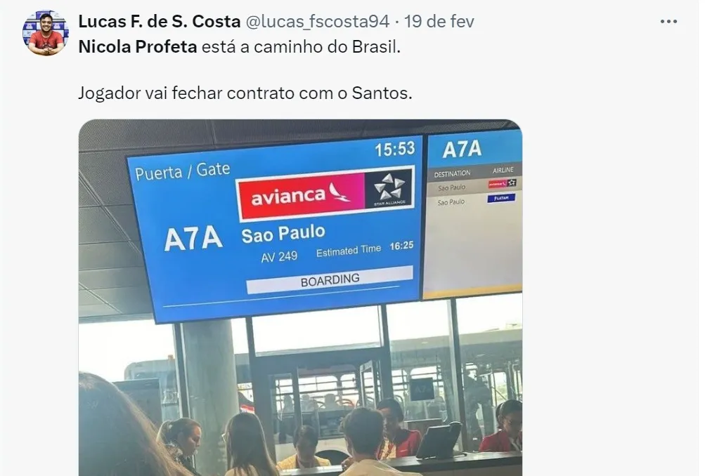 O Bolavip Brasil apurou que o jovem venezuelano Nicola Profeta, que completa 18 anos daqui a uma semana, já está em São Paulo e deve viajar ao litoral nas próximas horas para realizar exames na Vila Belmiro. Seu contrato será de cinco temporadas – até o início de 2029.