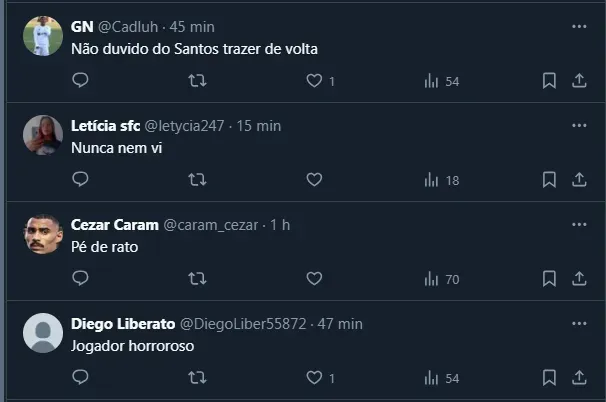 “Ah, eles sempre vaiam. Mas eu fiz um gol contra o Santos pelo Goiás e não comemorei, então eles sabem que tenho respeito pelo clube”, disse o atleta em entrevista concedida ao GE.