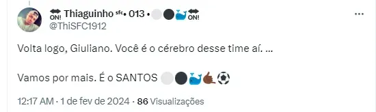 Após o triunfo, o treinador do Leão do Mar, Fábio Carille deu entrevista coletiva e acabou falando de alguns assuntos. Entre eles, a ausência de um jogador considerado muito importante: o meia Giuliano.