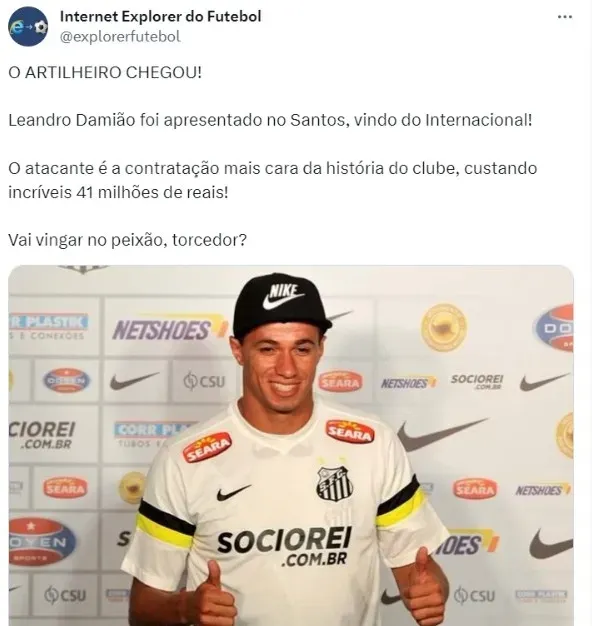 Willian Bigode já tem tudo acertado para ser reforço do Santos em 2024 e agora um velho conhecido chegou na mesa de Marcelo Teixeira: o centroavante Leandro Damião.