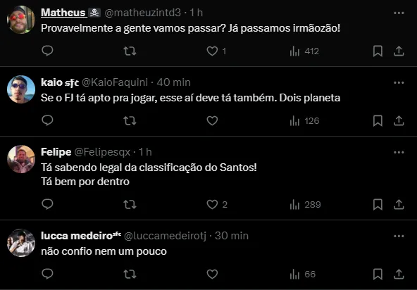 “Em breve estarei em campo ajudando o Santos e dando alegria ao torcedor santista. Com certeza, estou apto, estou bem. Agora é esperar, porque provavelmente a gente vai passar a próxima fase, e esperar a oportunidade em campo para ajudar o Santos“, disse Jorge.