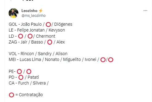 Por outro lado, muitas saídas acontecerão na Vila Belmiro. Vários times do futebol brasileiro e do exterior já estão de olho na situação de nomes do atual elenco santista e podem vir forte em cima do Peixe para contratar jogadores.