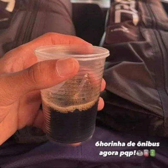 Nesta quinta-feira (6), vazou um stories do atacante Weslley Patati, cria da base santista, mostrando um copo de café e dando uma alfinetada no tempo de viagem de ônibus que o elenco estava fazendo.