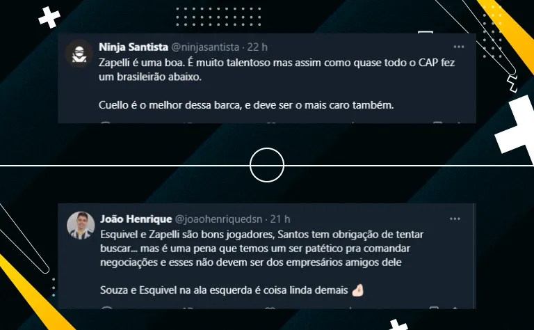 Por fim, além da necessidade de buscar um centroavante que consiga se firmar como titular, o Peixão também precisa reforçar o setor criativo de meio-campo. Até por isso, o nome de Zapelli foi aprovado pelos torcedores, conforme é possível ver abaixo:
