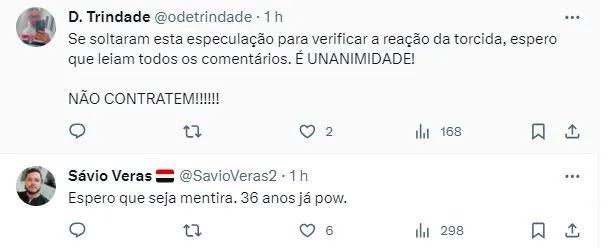 Gabriel Sá iniciou sua live sem revelar o tempo de contrato, mas no decorrer acabou dizendo que provavelmente o meio-campista de 36 anos irá assinar seu vínculo por apenas uma temporada.