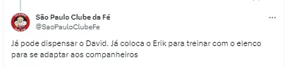 Segundo a apuração, trata-se do atacante David. Ele pertence ao Internacional e está emprestado ao São Paulo até o fim deste ano. O Tricolor chegou a fazer uma proposta para manter ele, mas o Colorado não aceitou a oferta pelos valores.
