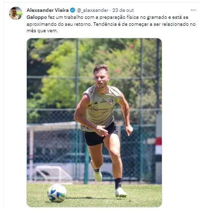 No que diz respeito a próxima temporada, um dos grandes reforços que Dorival terá para o Soberano é o meia argentino Galoppo. Ele começou a temporada de 2023 sendo o artilheiro do Tricolor Paulista, mas se lesionou e desfalcou o time no ano. Em 11 jogos disputados, ele tinha oito gols e duas assistências.