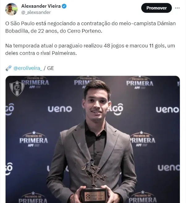 O volante já é monitorado pelo São Paulo há algumas semanas. O clube iniciou os contatos com o Cerro Porteño. A ideia é conseguir uma compra com bom parcelamento.