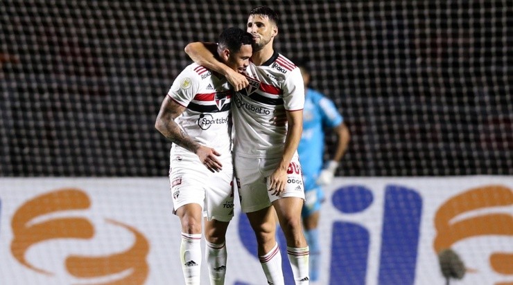 Calleri comemora com Luciano o gol de empate do São Paulo no Morumbi (Foto: Getty Images)