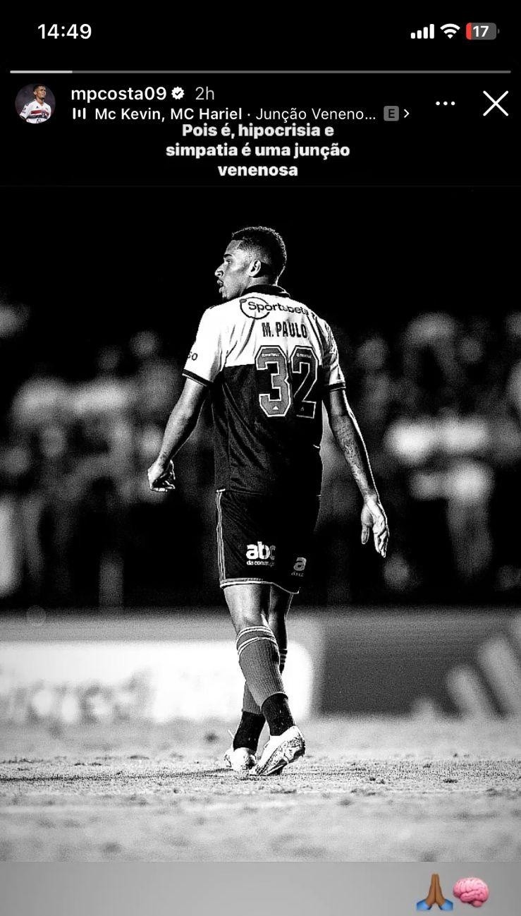 "Hipocrisia e simpatia é uma junção venenosa"; Marcos Paulo faz post 'enigmático' e assunto incendeia na torcida do São Paulo