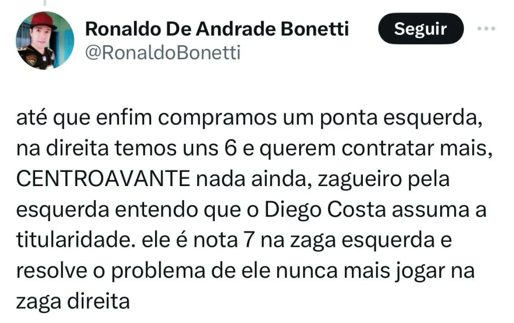 “Em determinado momento, ontem, anteontem, estavam pessimistas (no São Paulo). Mas já soube hoje de manhã que a conversa pode fluir nos próximos dias, nas próximas horas. Uma pessoa muito cuidadosa da direção do São Paulo me disse: ‘Esse negócio ainda é considerado difícil, mas eu acho que vai acontecer”, afirmou.