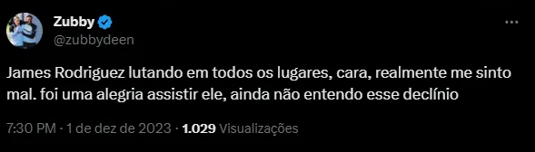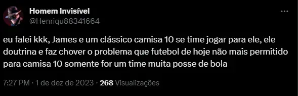 “Quando o James fechou com o São Paulo, ele aceitou que em 2023 seus vencimentos fossem menores. Ou seja, a partir do ano que vem, ele passa a ganhar bem acima de R$ 1 milhão por mês“, revelou Nicola.