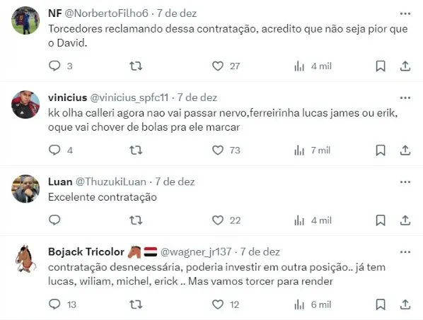O otimismo na Barra Funda é grande pela contratação, garantiu o jornalista, que cobre diariamente o Tricolor Paulista em suas redes sociais.