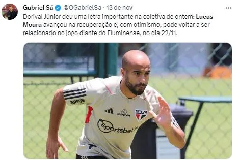 Neste contexto está a situação de Lucas Moura, que está afastado por lesão, após ser diagnosticado com estiramento no músculo posterior da coxa esquerda, no Clássico disputado contra o Palmeiras, no Allianz Parque, no final de outubro.