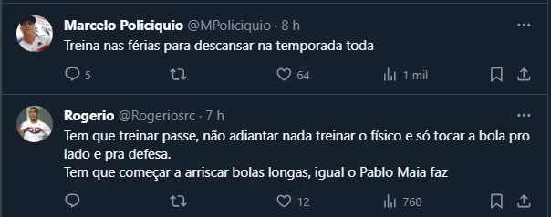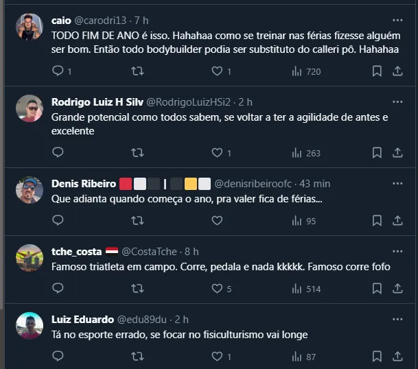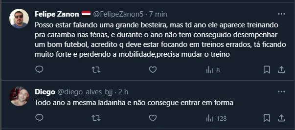 Contudo, como a temporada não foi das melhores e uma das principais críticas ao jogador sempre foi a questão física, alguns são-paulinos trataram de ironizar a publicação da cria de Cotia.