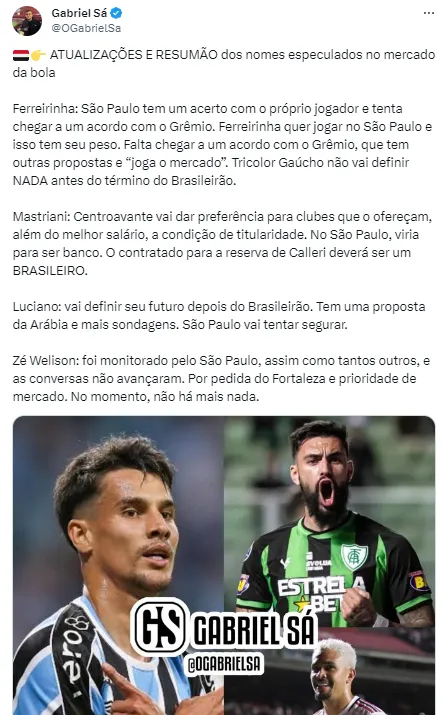 Com a liderança de Julio Casares, o Soberano pretender gastar uma grana na janela de transferências e assim correr atrás do Tetra da América. O feito inédito no Brasil pode ser alcançado pelo São Paulo, mas talvez sem a ajuda de Ferreirinha.