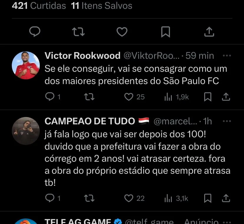 “Não há nada previsto. O Lucas voltou neste ano. Muitos duvidavam. O Calleri, o Rafinha, o Arboleda, todos foram grandes contratações. Porque renovação de contrato é grande contratação. Mas eu alerto: às vezes, aparece (informações de negociações com) jogador no qual nós nem estamos pensando”, finalizou. Houve também novas atualizações sobre James no Tricolor.