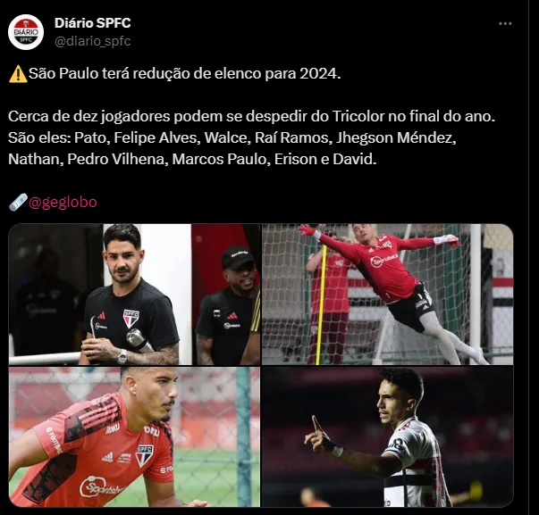 Alguns atletas já estão praticamente descartados. Estes são os casos do goleiro Felipe Alves e do atacante Alexandre Pato, por exemplo. Com pouco espaço com Dorival Jr., ambos já são contados como carta fora do baralho. Pato, inclusive, não correspondeu às expectativas de parte da torcida tricolor, e não entregou o nível técnico esperado pelo comandante para assegurar sua permanência na equipe.