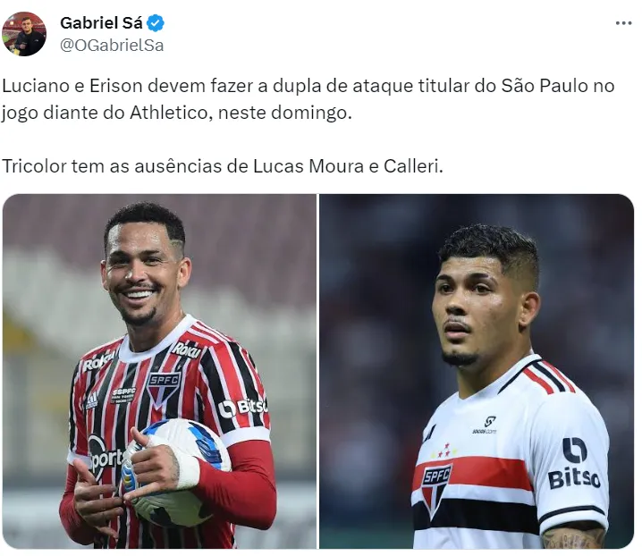 Atualmente, o Tricolor ocupa a 10ª posição da tabela, enquanto o Furacão é o quinto colocado. A bola rola para o duelo entre São Paulo e Athletico Paranaense às 16h (horário de Brasília).