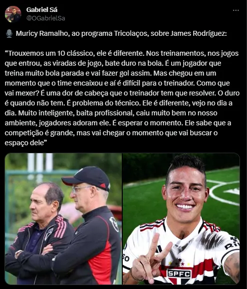 O estilo de jogo do São Paulo e de Dorival também é uma variável importante a ser considerada. A equipe pode ter um sistema tático que não se encaixe perfeitamente nas características de jogo de James Rodríguez, mas se pensar que James ficou quatro meses parado antes de assinar com o time paulista, pode aumentar a dificuldade de se encaixar.