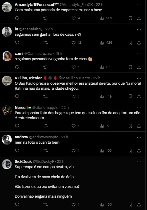 Em contrapartida, o São Paulo vive um momento muito diferente no Morumbi, acumulando 46 pontos no Brasileirão até o momento, com 38 pontos conquistados.
