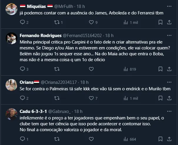 De qualquer forma, a prioridade do São Paulo no momento passa a ser a lateral esquerda, visto que Welington possui contrato até o fim do ano e é praticamente a única opção de Carpini.