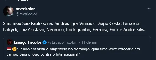Isto é, contratado para fazer a diferença, André Silva pode perder ainda mais espaço no time e tem o futuro indefinido no momento. A partida entre Inter e Tricolor vai acontecer amanhã (13), às 20h.