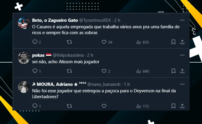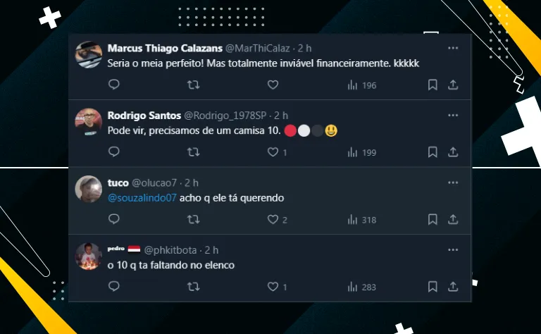 Nos comentários, o meio-campista do Fulham (ING) mandou a seguinte resposta: “Bom de te rever, Julio Casares. Um grande abraço, meu amigo!”. Até por isso, o assunto esquentou os são-paulinos.