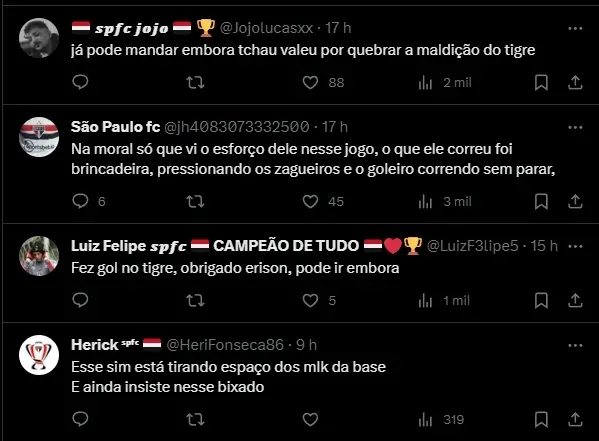 Para 2024, o São Paulo acertou a contratação de Erick, do Ceará. O jogador assinou um pré-contrato com a equipe paulista. No Vozão, disputou 111 partidas, com 23 gols e 15 assistências realizadas.