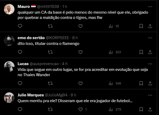 Atualmente, a equipe conta com David e Erison para a posição. Diante do Galo, Erison ganhou a oportunidade entre os titulares, mas não agradou e o futuro fica indefinido.