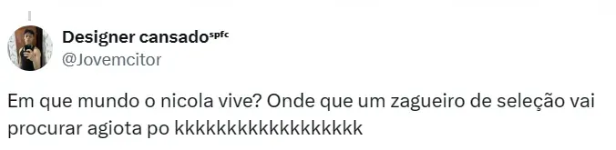 “Ele gosta muito, mas muito, mas muito da noite. A noite para ele é uma criança. Esses R$ 5 milhões tem grana com agiota, processo com empresário, tem grana da noite. É uma preocupação do São Paulo”, completou Nicola.