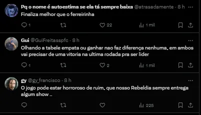 O Clube dele já não tem chances de ir para as oitavas de final de Libertadores, mas ainda briga por uma vaga na Sul-Americana, em que joga por um empate. “No torneio vamos lutar até o fim. Agora vamos pensar no domingo, onde temos que vencer”, encerrou.