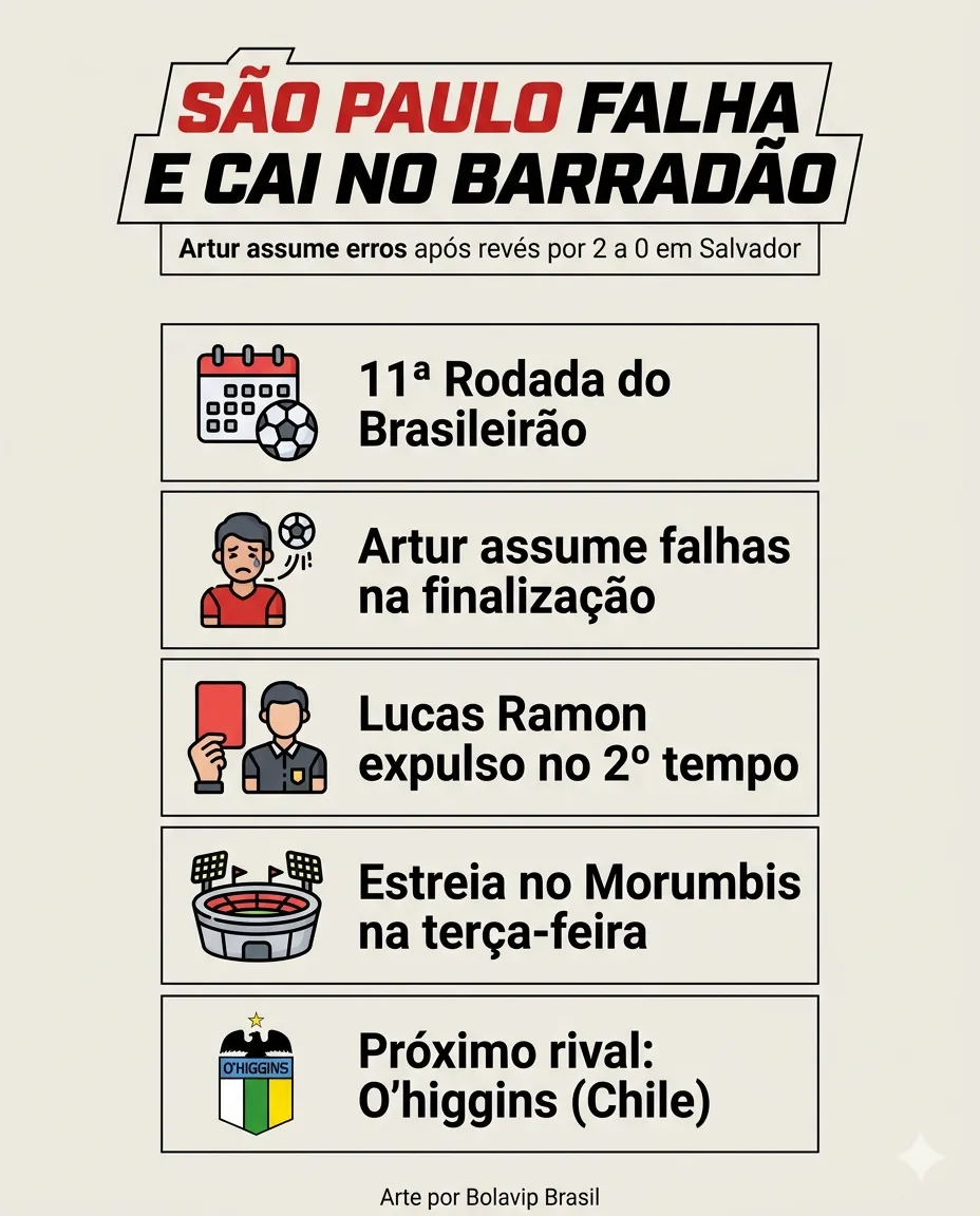 O São Paulo acabou sendo surpreendido neste sábado (11), ao perder por 2 a 0 para o Vitória no Barradão, em duelo pela 11º rodada do Campeonato Brasileiro. Titular e um dos principais nomes do ataque, Artur vê a capacidade de definição como principal problema tricolor no jogo.