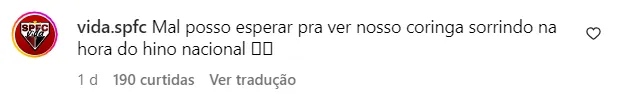 Outra torcedora escreveu: “Como merece nosso eterno zagueiro”. Confira abaixo outros comentários dos torcedores são-paulinos na publicação de Lucas Beraldo.