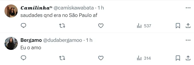 Outra torcedora não deixou de puxar para o lado Tricolor: “Saudade de quando era no São Paulo af”. Confira abaixo os diversos comentários da torcida São-Paulina.