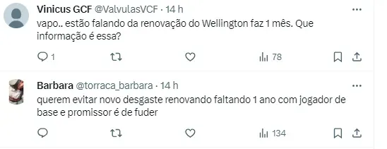 Trata-se de Wellington. O defensor de 22 anos tem seu vínculo terminando no final desse ano e poderia assinar um pré-contrato com outra equipe no meio do ano. Por isso, a diretoria decidiu se movimentar.