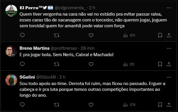 Os comentários dos torcedores