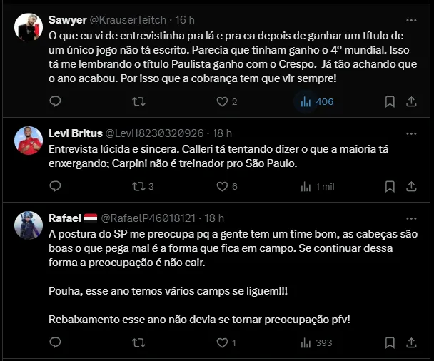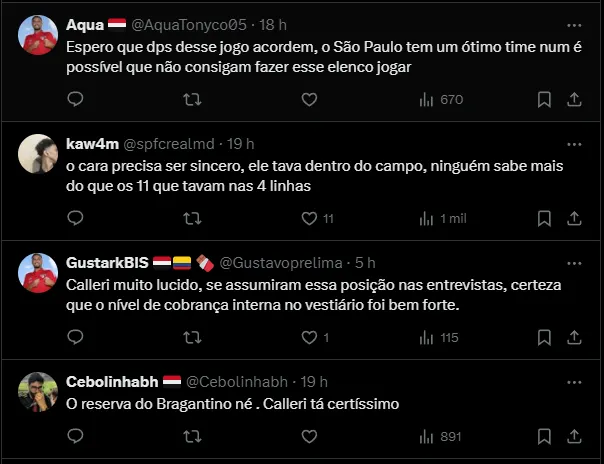 Dessa maneira, após o confronto, Calleri participou de uma rápida entrevista com a TNT Sports, assim, o centroavante argentino mostrou o descontentamento, criticou o desempenho dos jogadores durante os 90 minutos: