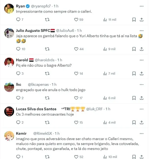 “Os três atacantes mais difíceis de marcar no futebol brasileiro são Calleri, Hulk e Pedro. Desses, o mais chato é o Calleri e o mais difícil é o Pedro, revelou o Murilo, zagueiro do Palmeiras, em entrevista ao André Hernan.