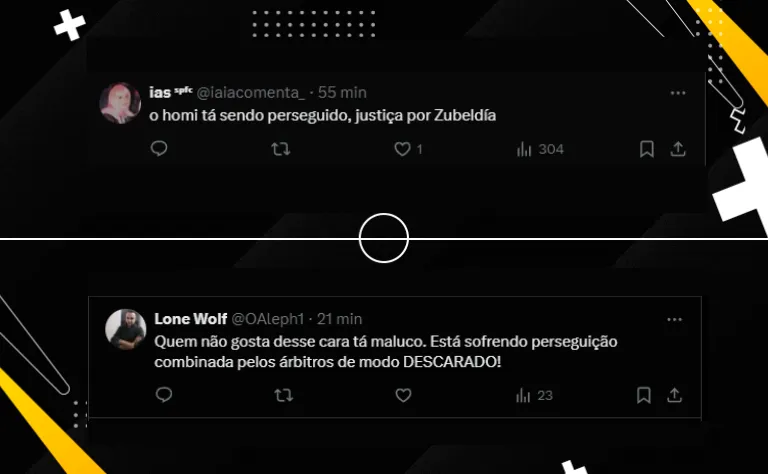 A torcida são-paulina também não aprovou, nessa lance, o cartão para Zubeldía. Já Carlos Belmonte fez um alerta a atual situação do treinador durante a entrevista para os repórteres, no Morumbis: