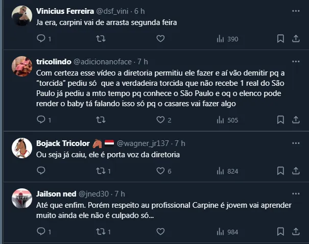 Depois de vencer o Cobresal (CHL) por 2 a 0, Carpini voltou a sentir a pressão de ser xingado por mais de 30 mil pessoas. O revés por 2 a 1 fez o público presente no Morumbis perder a paciência e pedir a troca. O treinador avaliou a situação na coletiva: