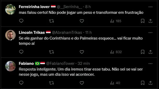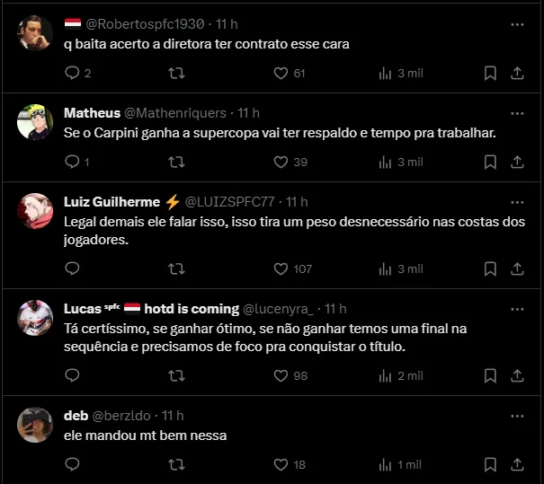 Para Carpini, o atual elenco do Tricolor Paulista não pode entrar em campo com esse ‘peso nas costas’. Os jogadores devem jogar para vencer, mas com o objetivo de conquistar os três pontos.