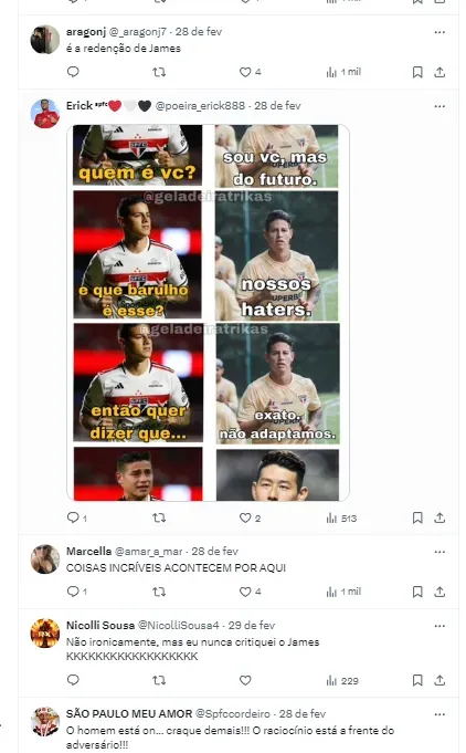 “É difícil falar. Até o próprio atleta é difícil falar o quanto ele suporta. Se você falar o quanto ele quer jogar, acredito que na próxima partida ele também queira jogar mais. Se pudesse ter o James 90 minutos, claro que eu queria”, iniciou o treinador.
